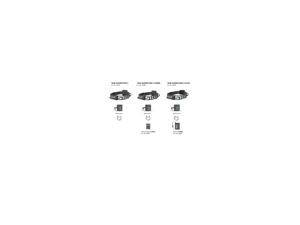 SILVA Trail Runner Free 2 Ultra, je inovovaná verze úspěšné čelovky Trail Runner Free, která získala ISPO AWARD 2020. Kompaktní jednolitá konstrukce bez zbytečných kabelů, s energií vedoucí uvnitř elastické čelenky, to je jedinečná technologie Silva Free. Oproti předchozí verzi má Trail Runner 2 vyšší světelný výkon, efektivnější chlazení reflektoru a komfortnější polstrování v přední části pod reflektorem. Zdroj je umístěn v zadní části elastické čelenky, nebo může být pomocí prodlužovacího kabelu uložen v batohu, ledvince nebo běžecké vestě, to oceníte při déle trvající aktivitě, kdy vás samotná čelenka s reflektorem o hmotnosti pouhých 58g nebude nijak omezovat. V mínusových teplotách prodloužíte životnost baterie tím, že ji díky kabelu umístíte do tepla pod bundu. Čelovka Trail Runner Free 2 disponuje světelným výkonem 450 lumenů s 3xAAA články, Trail Runner Free 2 Hybrid 500 lumeny díky nabíjecí Hybrid baterii 4,75Wh - 38007 a Trail Runner Free 2 Ultra svítí 550 lumeny s nejvýkonnější nabíjecí baterií 14,8Wh - 38008. Do bateriového boxu, jehož součástí je červené bezpečnostní světlo / blikačka, se díky technologii Hybrid jako zdroj používají 3xAAA články, nebo nabíjecí Hybrid baterie 4,75Wh, ta je součástí balení Trail Runner Free 2 Hybrid. Nejvýkonnější bateriie 14,8Wh je dodávána v neoprénovém pouzdru se suchým zipem, lze ji připnout na zadní část čelenky, nebo pomocí prodlužovacího kabelu uložit např. do batohu, tato baterie má 4 diody indikující stav nabití, tato baterie je součástí balení Trail Runner Free 2 Ultra. Technologie Intelligent Light, kombinující široký světelný kužel a zároveň daleký dosvit rovnoměrně prosvětlí prostor před vámi. Komfortní elastická čelenka se silikonovým středem perfektně drží na hlavě. Pro základní informaci o stavu baterie, aniž by jste museli čelovku sejmout z hlavy, ji stačí na chvíli vypnout a na cca 5 vteřin se rozsvítí zelená dioda = baterie v dobré kondici, nebo červená dioda = baterie se blíží vybití. Trail Runner Free 2 včetně příslušenství, odolává stříkající vodě ze všech úhlů - voděodolnost IPX5. Prodloužená záruka 5 let na čelovku, 2 roky na baterii.